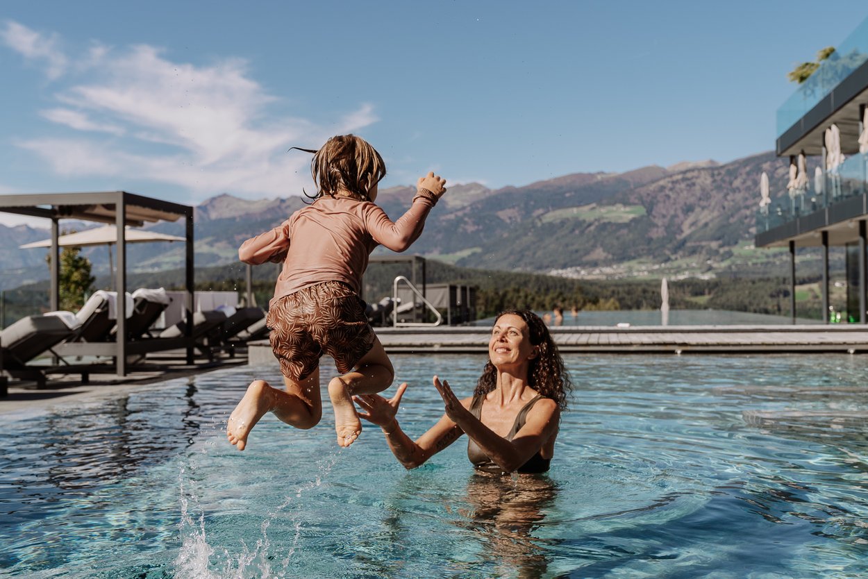 Ein 5-Sterne-Luxus-Designhotel, das besonders durch seine Symbiose aus natürlichen Materialien und moderner Architektur besticht. In Stefansdorf bei Bruneck, in außergewöhnlicher Panoramalage, unmittelbar am Golfclub Pustertal und am Ski- und Erlebnisberg Kronplatz. Mit der ganzen Familie eintauchen in die Vielfalt erfüllender Premium-Erlebnisse. Die Dolomiten von ihrer schönsten Seite entdecken. Mit Wanderungen, Biketouren und gar Helikopterflügen. Und anschließend aufleben in der inspirierenden und luxuriösen Spa-Welt mit sieben Pools, facettenreichen Saunen und exklusiver Familiensauna. On top: ganzjähriges Kinder- und Teenie-Programm sowie Kletter- und Fun-Sport-Halle. Für einen Lifestyle-Urlaub ganz ohne Kompromisse.